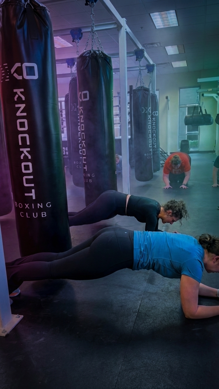 Core, bodyweight strength, and conditioning. Everything ties back to the boxing movements you just drilled. Stretch, breathe, high-five the person next to you. You earned it.