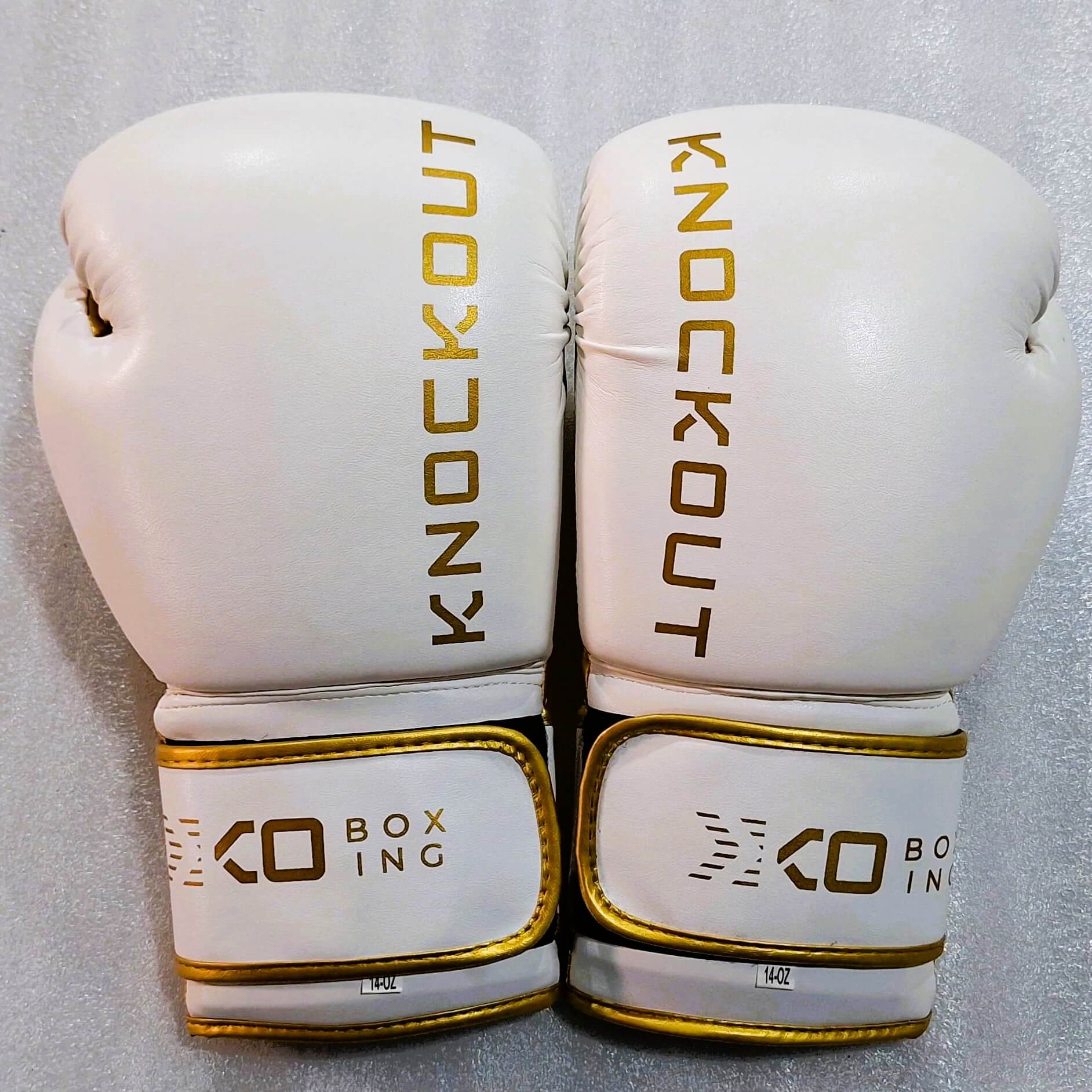 Step into the ring with unmatched style and performance. Knockout Boxing’s White & Gold Gloves are a perfect fusion of bold aesthetics and practical design, built for both amateur and professional fighters. Featuring a clean white exterior with a striking gold logo and outline, these gloves instantly stand out. The palm and thumb are fully wrapped in gold, adding a premium look that reflects power and precision.